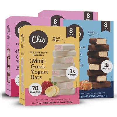 2 Raspberry Minis, 2 Yogurt Dipped Strawberry Banana Minis, 2 Salted Caramel Minis